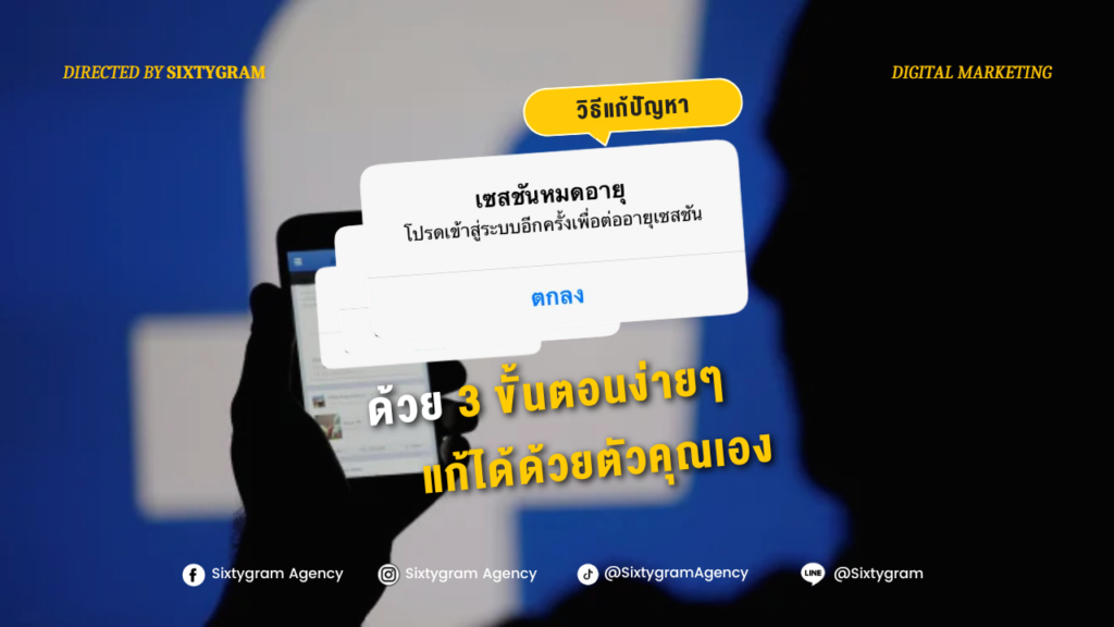 หากคุณกำลังอ่านบทความนี้ นั่นแปลว่าคุณกำลังได้รับป็อปอัพแจ้งเตือนจากระบบ Facebook ว่า Session Expired – Please log in again หรือ เซสชั่นหมดอายุ – โปรดเข้าสู่ระบบอีกครั้งเพื่อต่ออายุเซสชัน ซ้ำๆ อยู่ ซึ่งเราเข้าใจคุณดีว่ามันน่าหงุดหงิดขนาดไหนที่กำลังจะใช้เวลาว่างเพื่อเล่นเฟสบุ๊ค หรือเช็คแชทใน Messenger สักหน่อย แต่กลับติดปัญหานี้ นั่นทำให้วันนี้ Sixtygram Agency จะขออธิบายเกี่ยวกับปัญหาทางเทคนิคของเซสชั่นหมดอายุ(Session Expired) และมอบวิธีแก้ไขง่ายๆ ใน 3 ขั้นตอนให้แก่คุณกัน