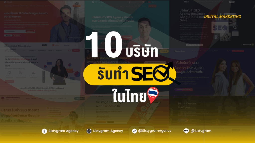การเลือกเปิดเว็บไซต์เองที่มีความสามารถในการดึงดูดลูกค้าให้รับชม(Website Traffic) ให้ได้แบบธรรมชาติ(Organic) ทำให้การเลือกทำ SEO ถือเป็นเรื่องที่ชาญฉลาดมากกว่า ดังนั้น ด้วยบริษัท SEO ที่มีหลายร้อยแห่งในไทย ในวันนี้ SIxtygram Agency จึงได้คัดเลือกและรวบรวม 10 บริษัทรับทำ SEO ในไทย มาให้คุณเลือกพิจารณา ศึกษาแต่ละเจ้า ที่สามารถเลือกชมผลงาน SEO ในอดีตของพวกเขา ไปจนถึงการติดต่อตามช่องทางของบริษัทเพื่อขอใบเสนอราคาต่อไปได้ครับ